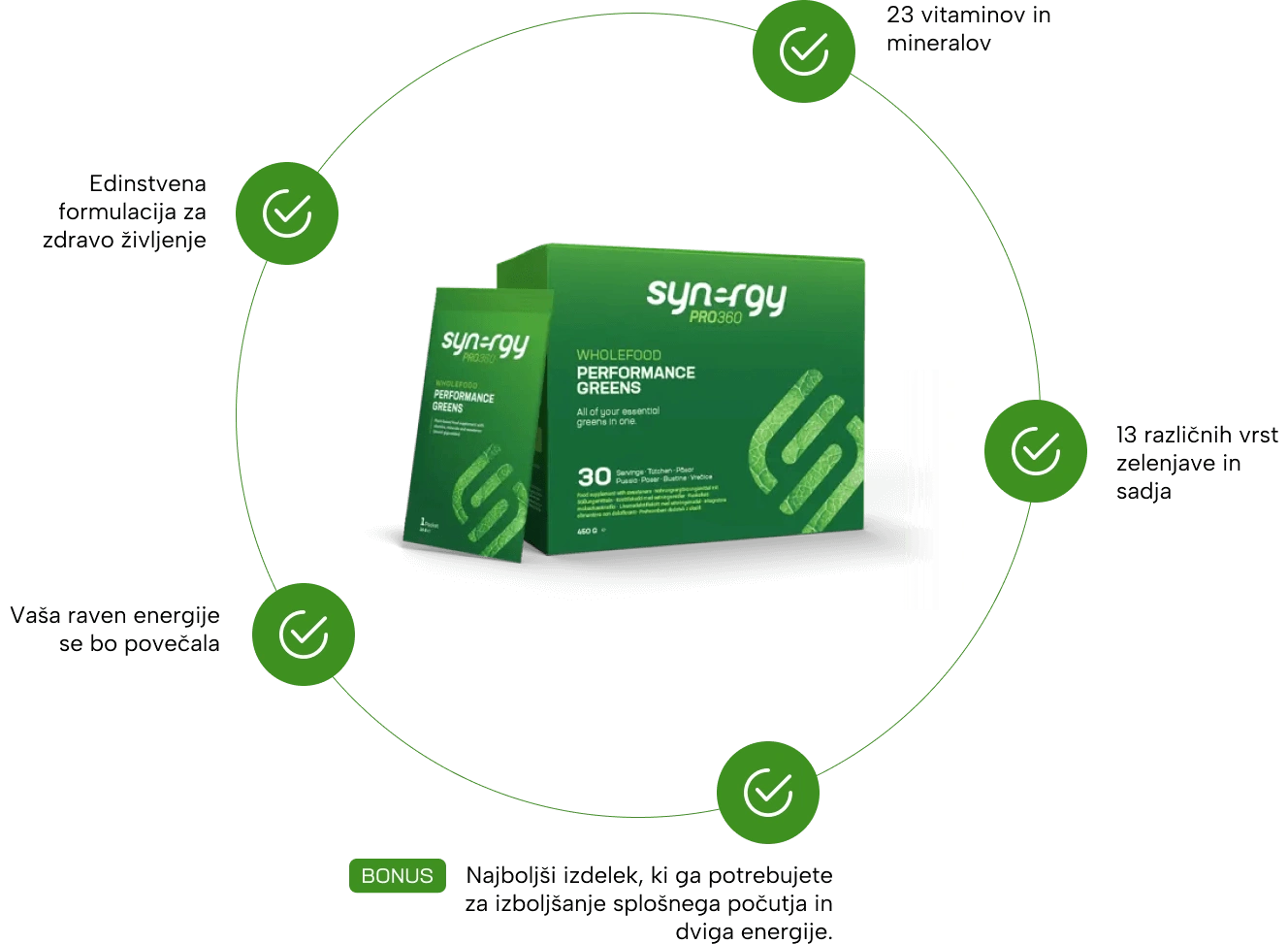 Idealen izdelek za športnike, ki želijo izboljšati svojo športno zmogljivost. Ob povečanju vnosa zelenjave in hranil, ki jih telo potrebuje, se izboljša splošno zdravje in počutje in s tem tudi športna zmogljivost in boljši rezultati.
